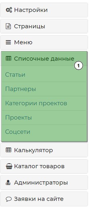 Для отображения всего списка статей, необходимо перейти в боковом меню в раздел "Списочные данные" и выбрать подраздел "Статьи".