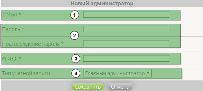 Для добавления нового администратора, необходимо в списке всех администраторов нажать на кнопку "Добавить нового администратора" и после чего будет открыта страница добавления нового администратора, а также такая информация: